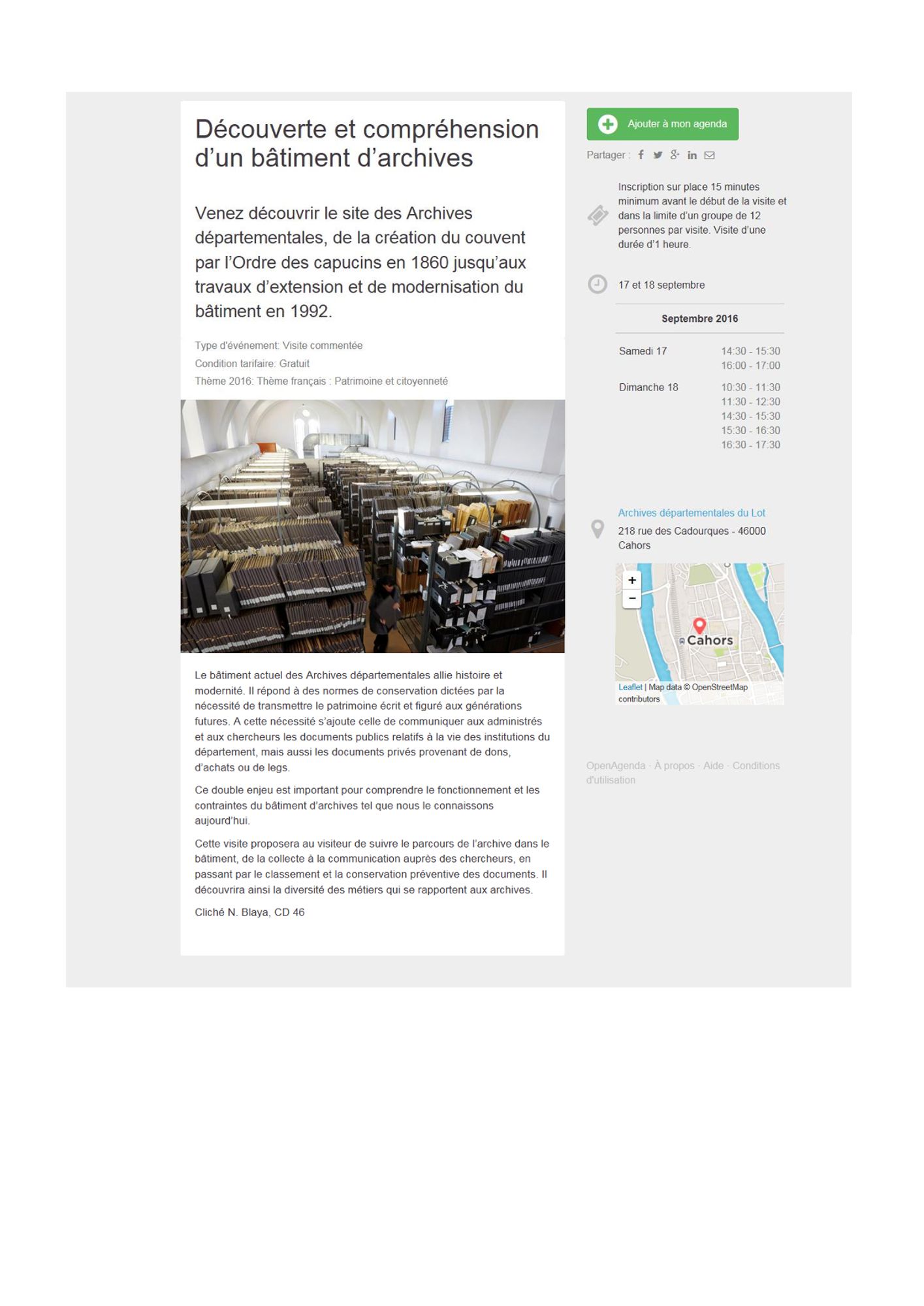 Le samedi 17 septembre de 14 h à 17 h 30 et le dimanche 18 septembre de 10 h à 12 h 30 et de 14 h à 18 h : les Archives départementales du Lot ouvrent leurs portes pour les Journées du patrimoine.