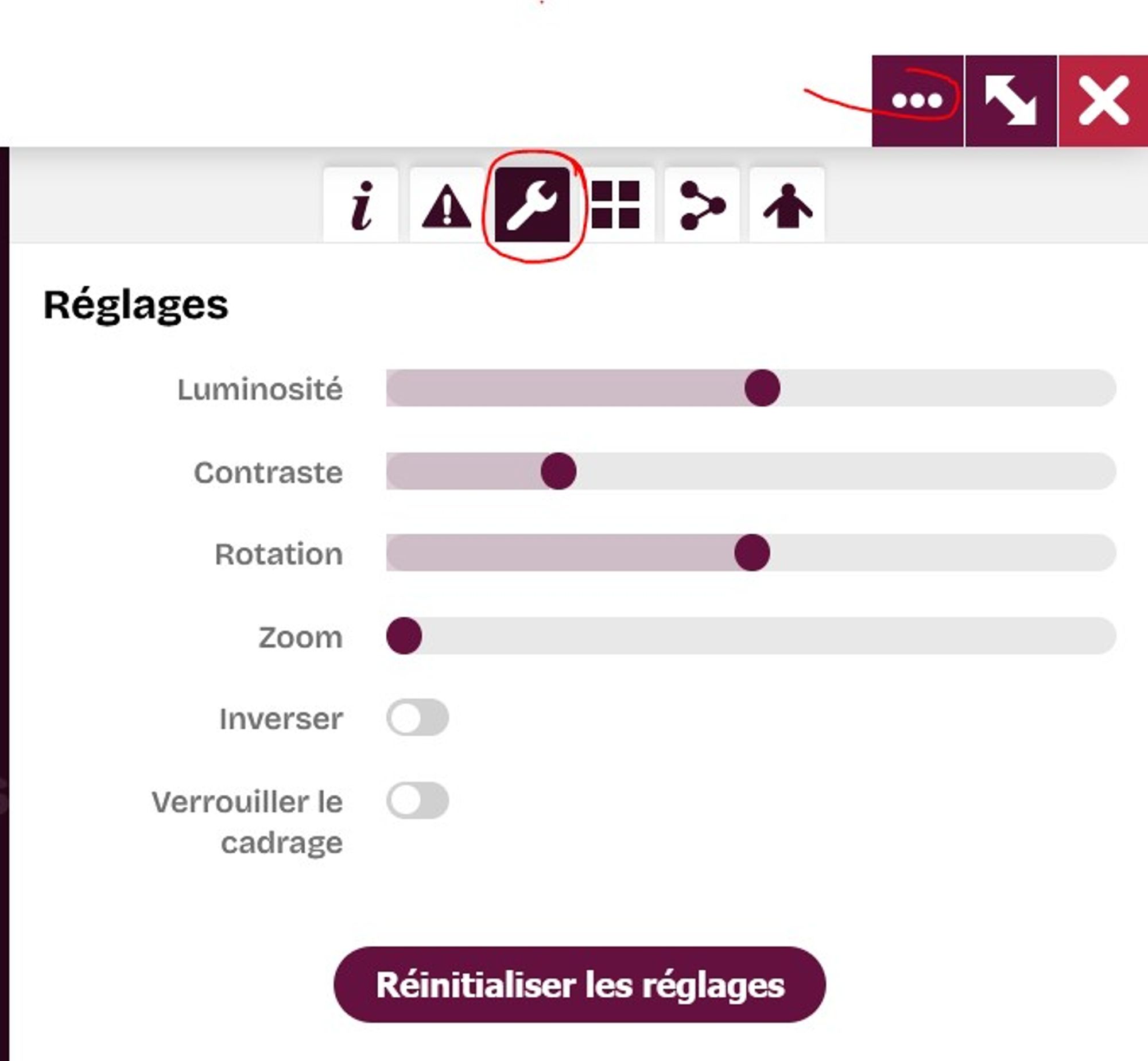 Là, vous pouvez régler la luminosité et le contraste, zoomer à votre gré et verrouiller le cadrage !