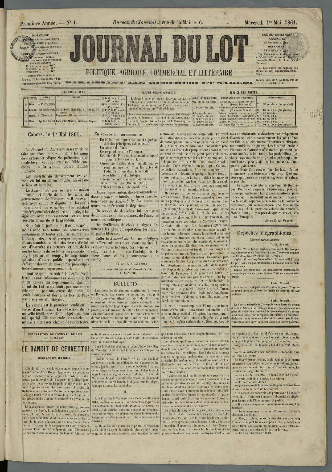 Le Département du Lot et la Communauté d’agglomération du Grand Cahors – partenaires du Centre régional des Lettres Midi-Pyrénées – ont le plaisir de présenter presque un siècle de presse lotoise dématérialisée : Le Journal du Lot (1861-1944) et L’Écho des Gourbis (1915-1918).