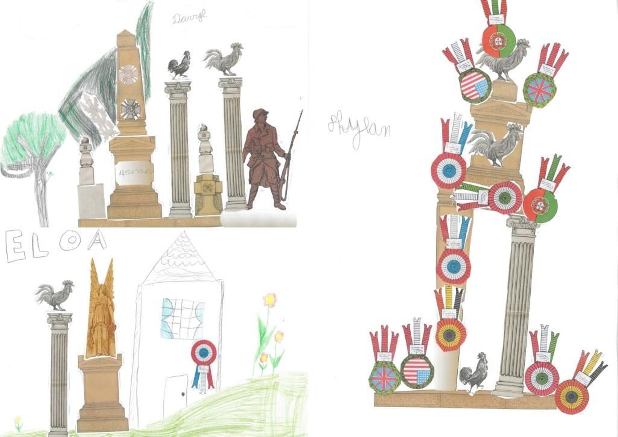 En retour, voici quelques-unes des réalisations des enfants qui ont participé à l’atelier « Fabrique ton monument ! » :