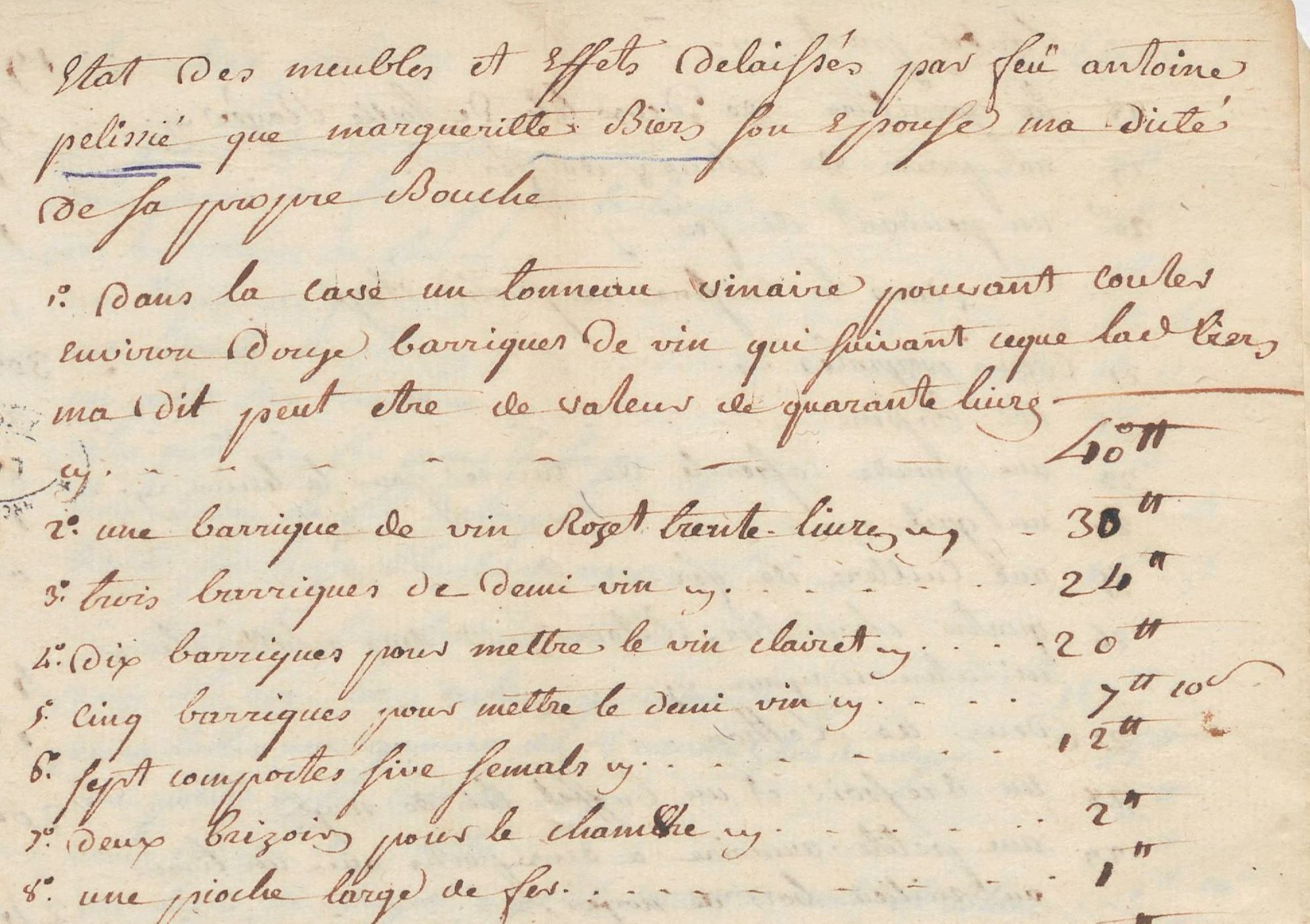 A découvrir : un inventaire après décès issu des pièces isolées de la série J (archives d’origine privée) qui décrit en mars 1770 les biens laissés par Antoine Pélissié.