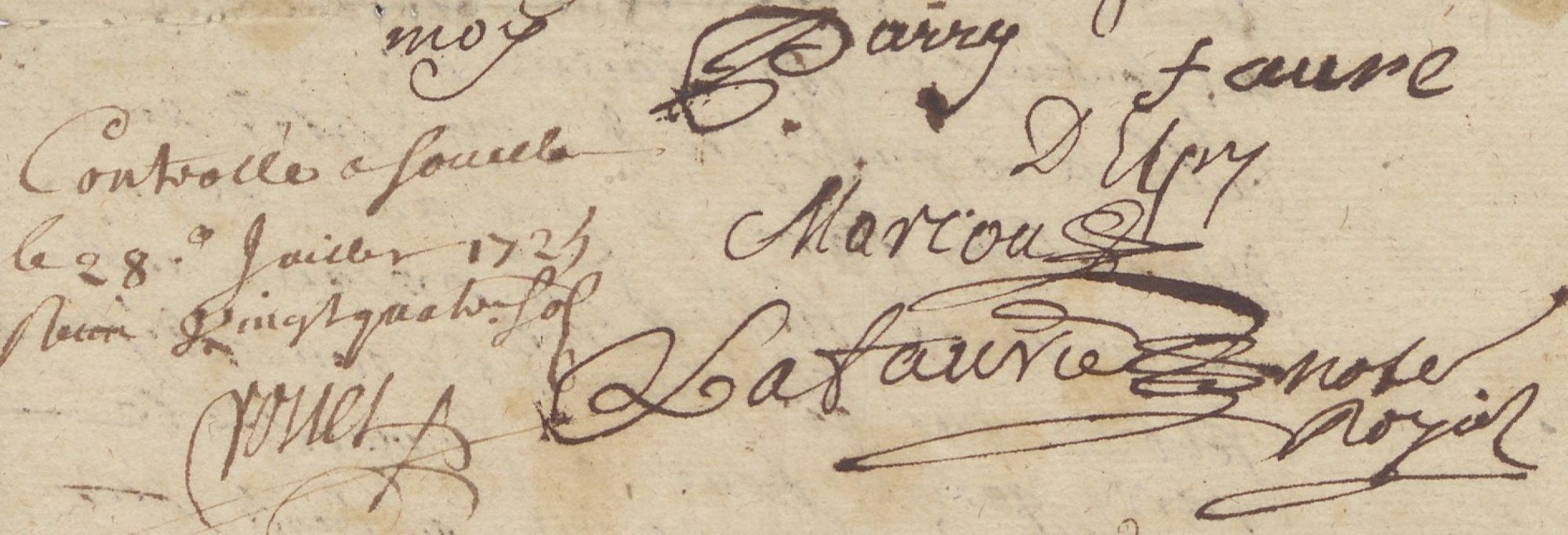Controllé à Souillac le 28 juillet 1725, receu vingt quatre sols