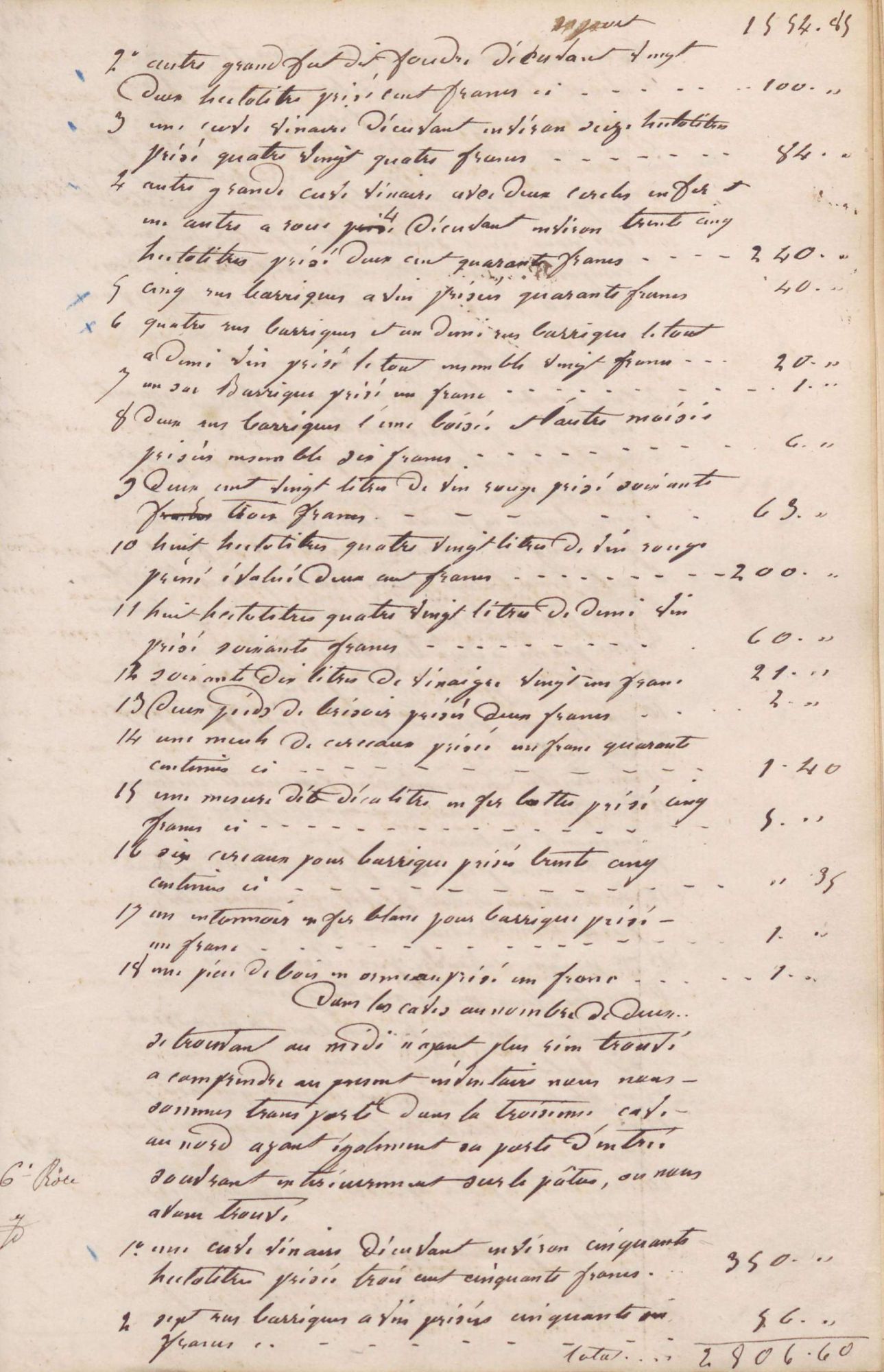 25- Prix de la récolte de vin de l’année vendu par la veuve depuis le décès de Labro Joseph et qui est reconnu par toutes les parties : 2 246 F