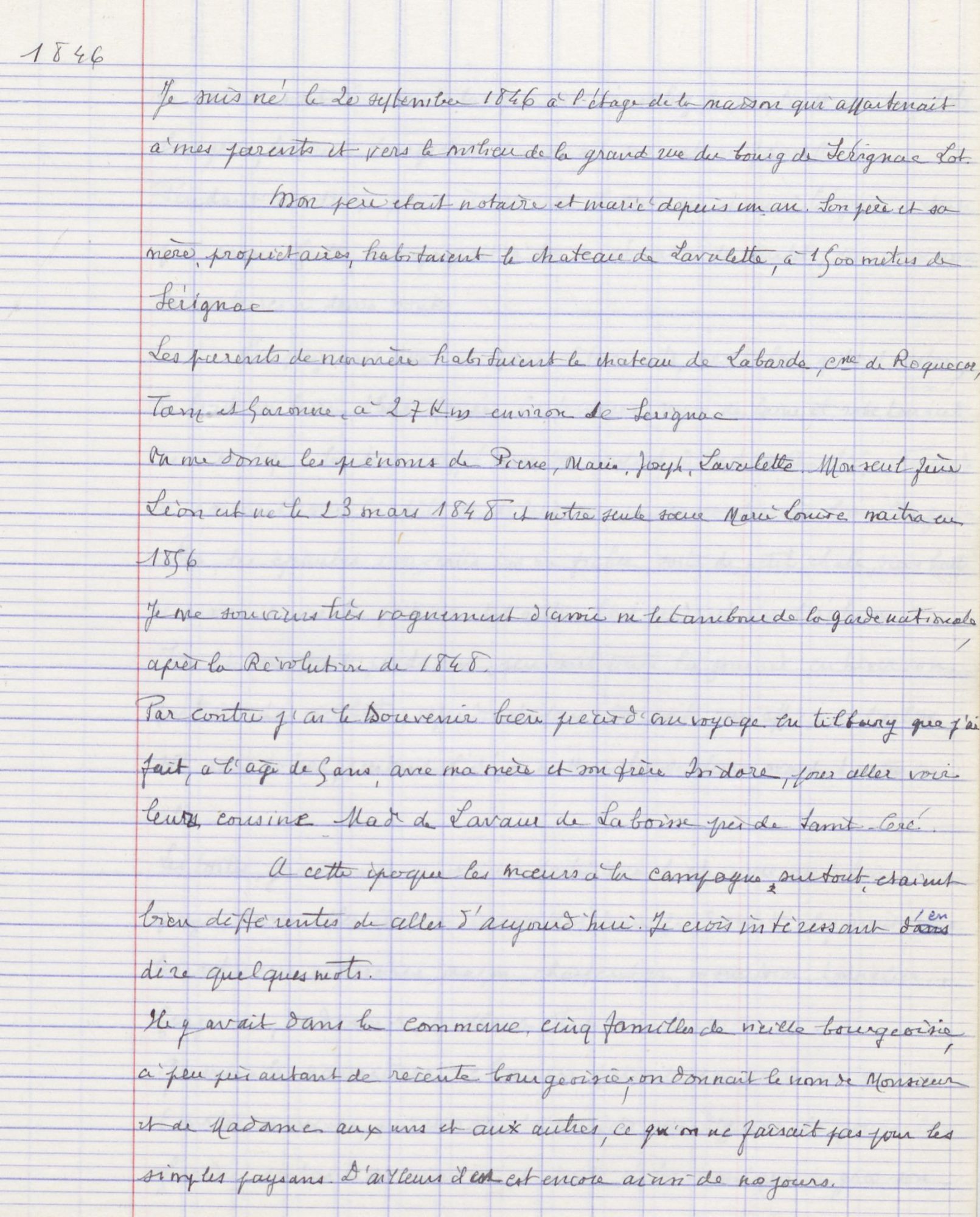 * Le texte ici présenté est une copie effectuée par H. Guilhamon sur deux cahiers d’écoliers de l’original alors conservé par le petit-fils de Joseph Daymard, Pierre Lasserre, docteur à Toulouse.
