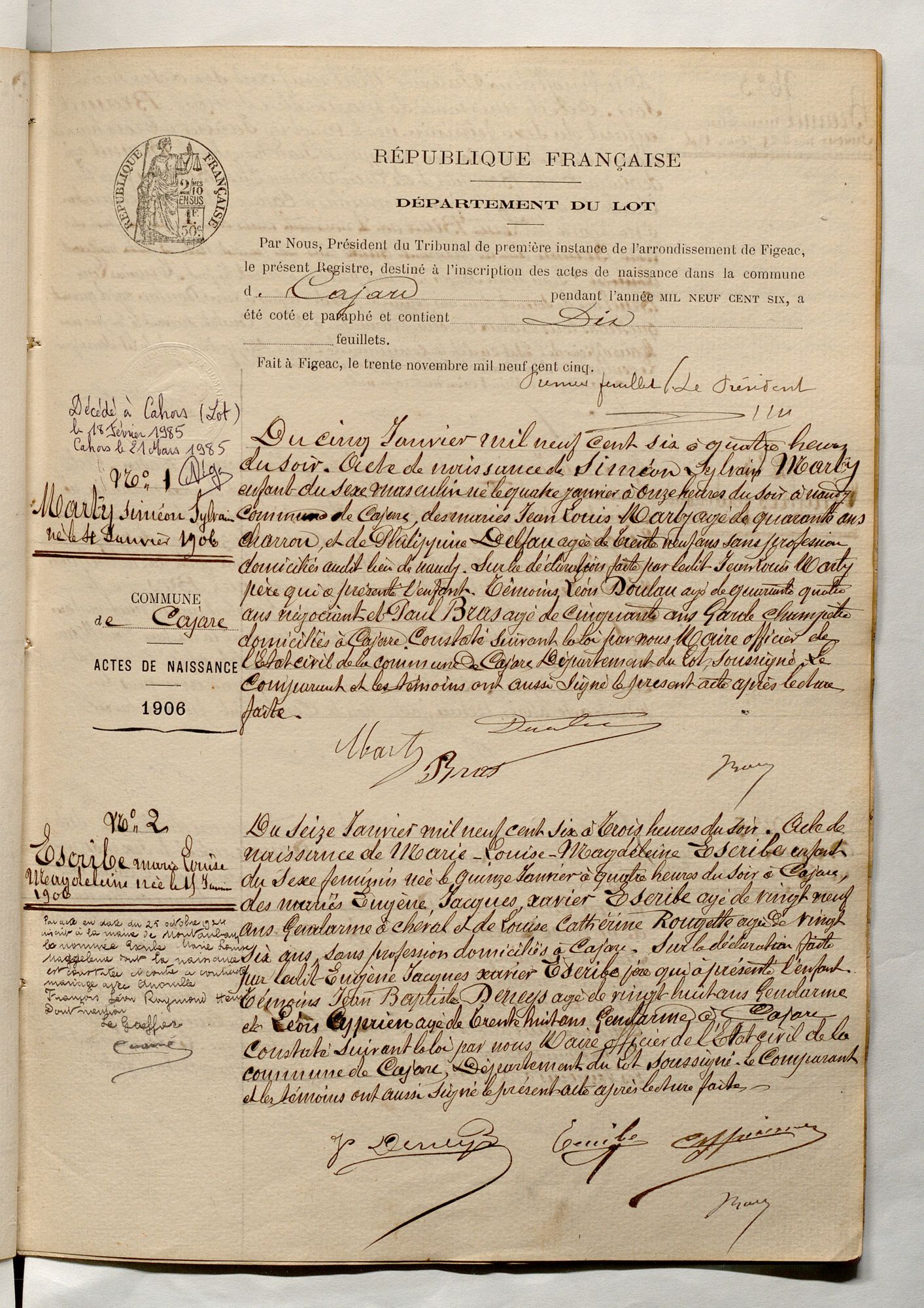 Commune Cajarc Description 1906 (naissances) Cote 4 E 3519 Ark name https://archives.lot.fr:443/ark:77978/s005fc95c2f9c63e.moteur=arko_default_67ebab2c7f97d