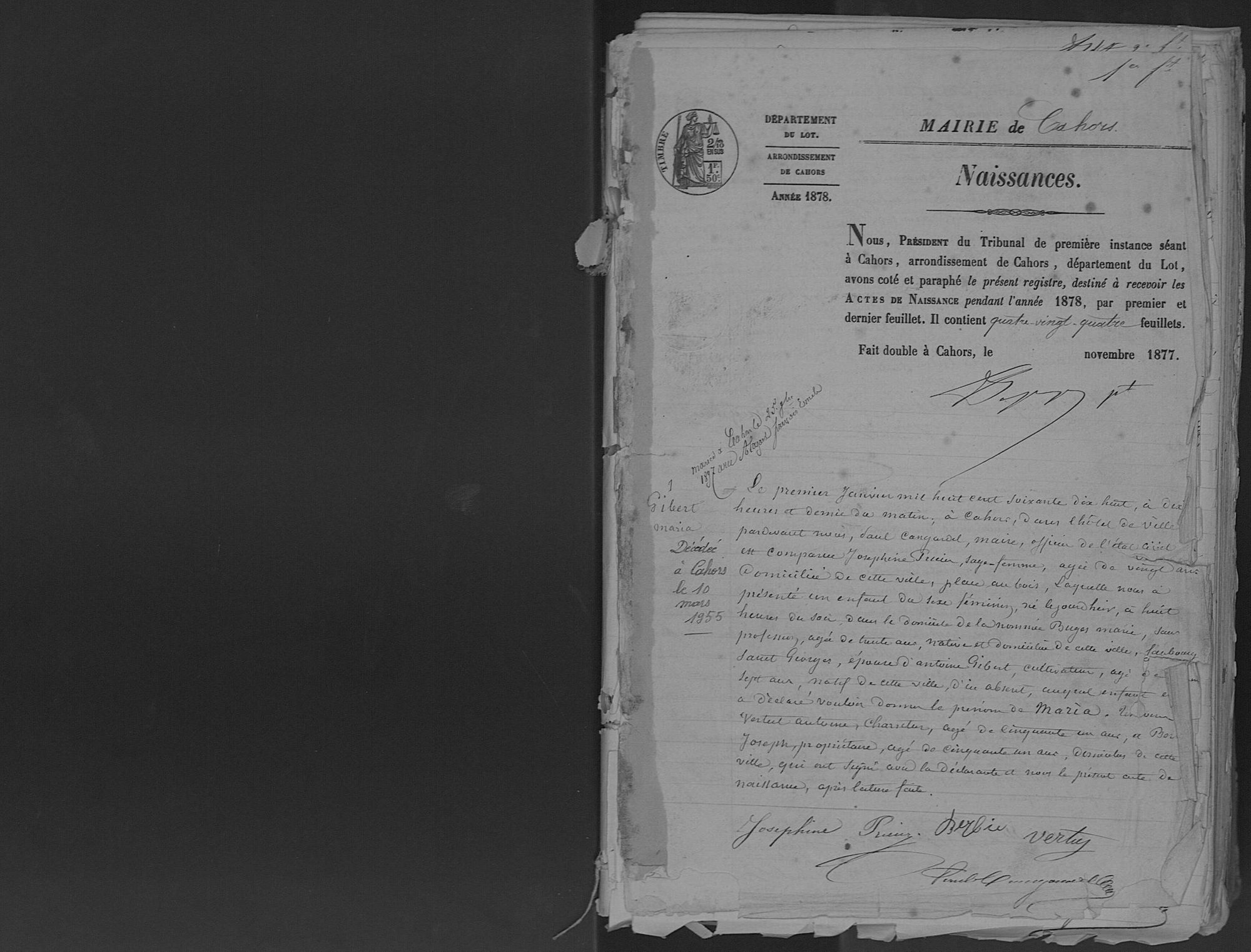 Commune Cahors Description 1878 (naissances) Cote 4 E 753 Ark name https://archives.lot.fr:443/ark:77978/s005b5991e35989b.moteur=arko_default_67ebab2c7f97d