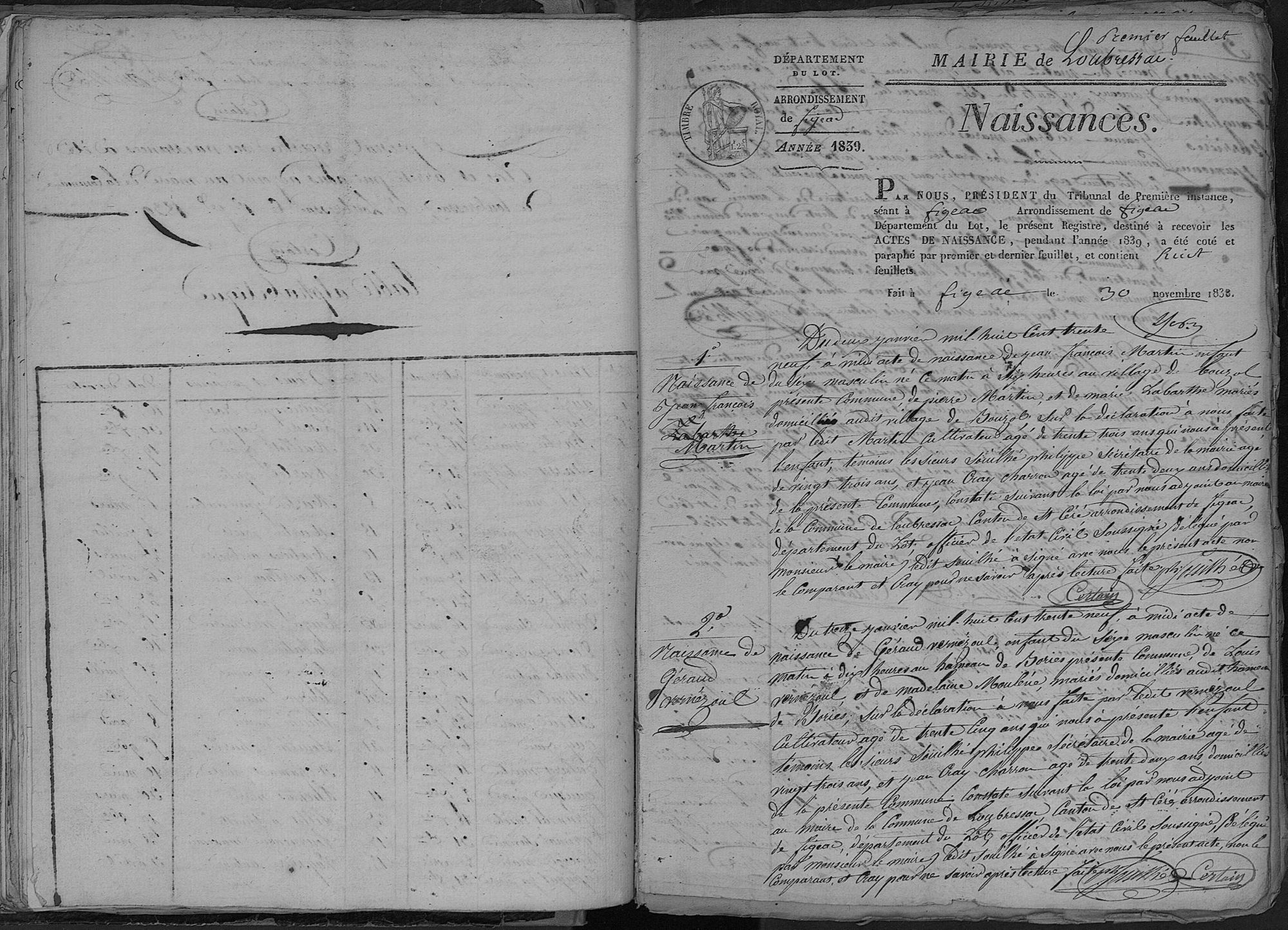 Commune Loubressac Description 1839 (naissances) Cote 4 E 1726 Ark name https://archives.lot.fr:443/ark:77978/s005b8fc9b06bc45.moteur=arko_default_67ebab2c7f97d