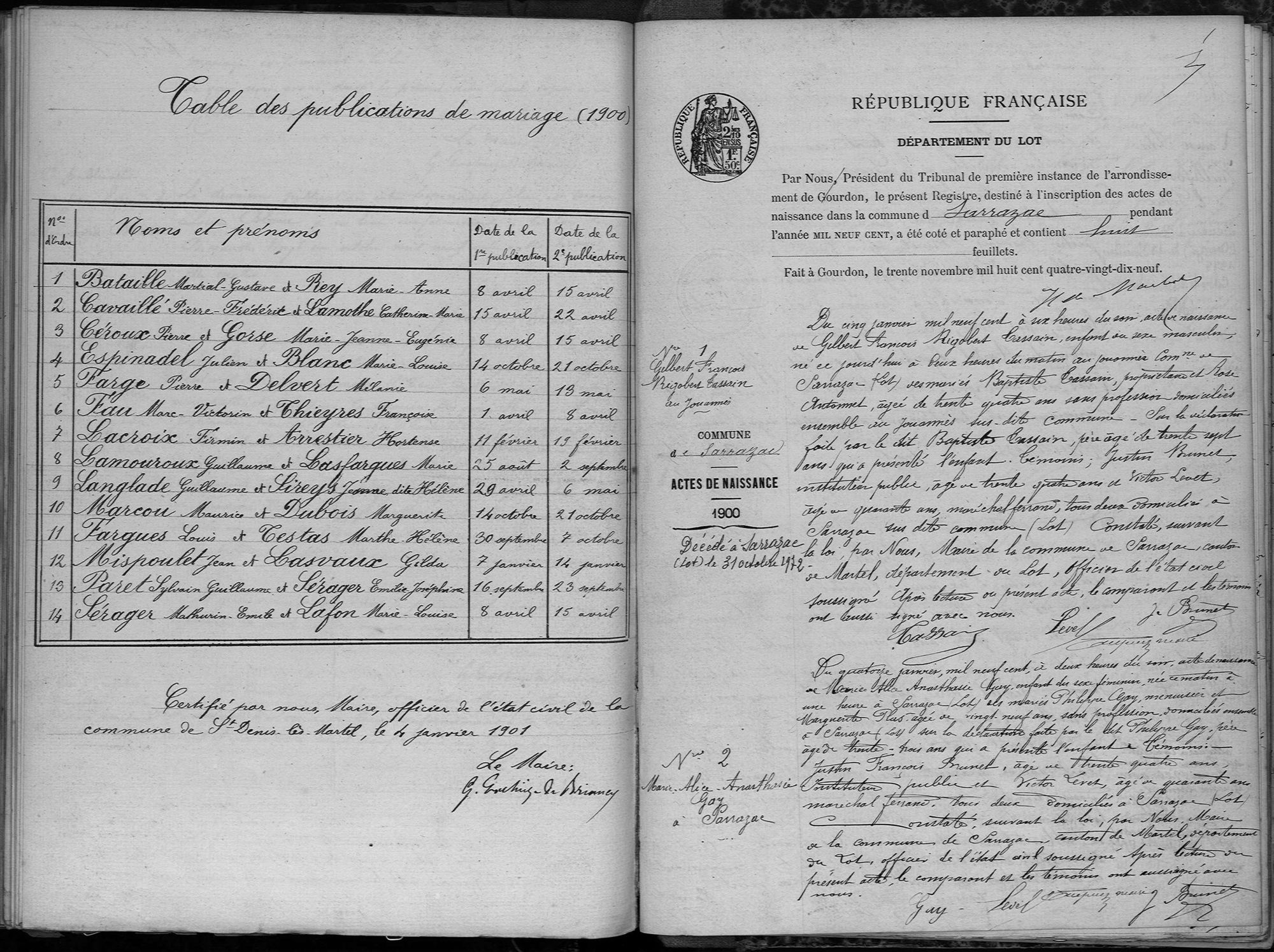 Commune Sarrazac Description 1900 (naissances) Cote 4 E 1860 Ark name https://archives.lot.fr:443/ark:77978/s005bcf0573d7a35.moteur=arko_default_67ebab2c7f97d